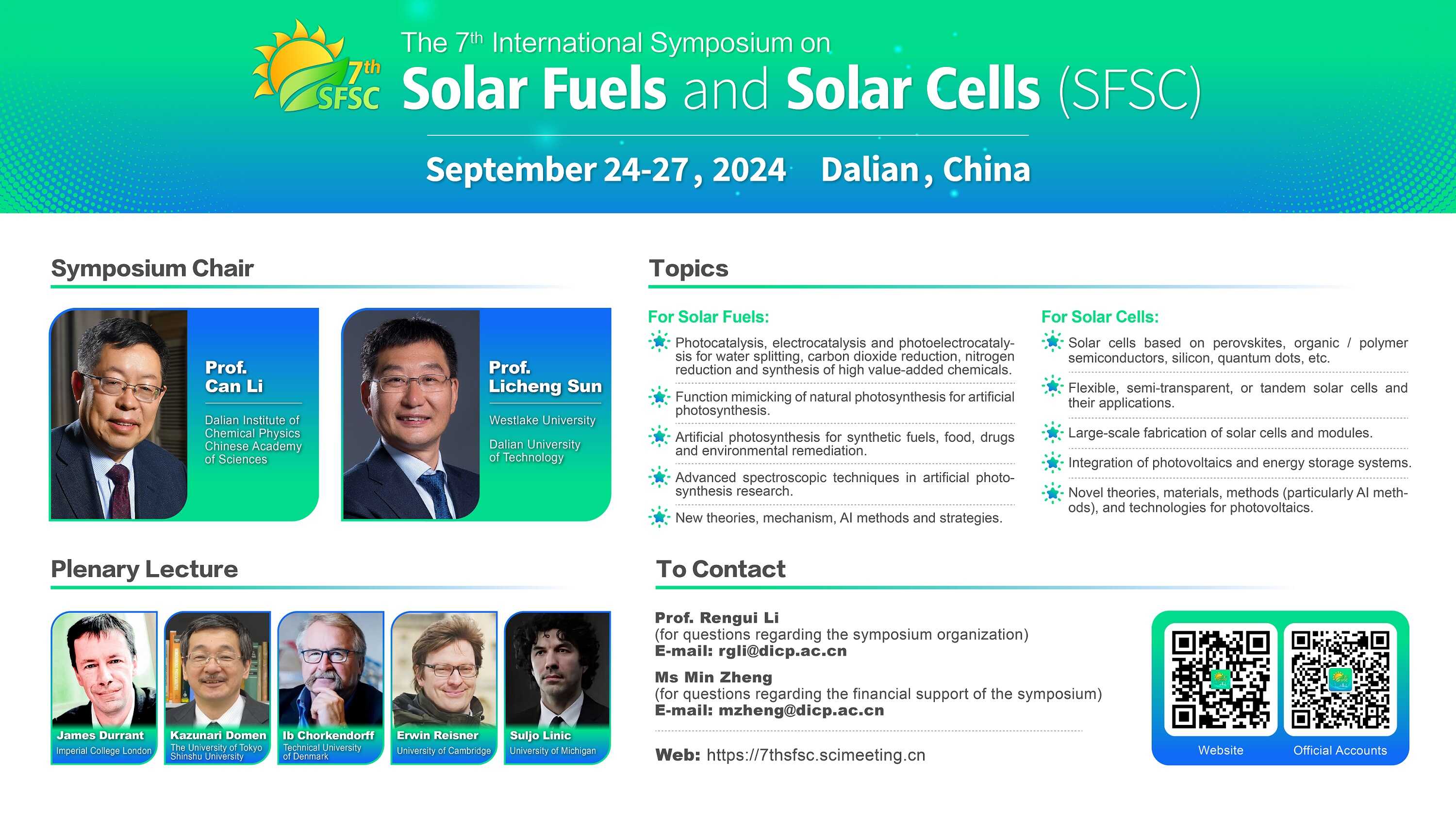 太阳燃料和太阳电池国际会议由我所李灿院士和大连理工大学孙立成院士(现就职于西湖大学)共同发起,至今已成功举办六届(两年一届),已经成为太阳能研究领域类似“高登会议”的国际高端品牌学术会议,在国际上产生了广泛影响力。受新冠疫情影响,原应在2020年举办的第七届太阳燃料和太阳电池国际会议延至今年召开。但春光不必趁早,第七届太阳燃料和太阳电池国际会议带着积攒6年的热忱如约而至。本次会议秉承为全球从事太阳能转化领域研究工作的专家、学者和专业技术人员提供高标准学术交流平台的一贯宗旨,将全面展示领域内最新的研究进展和成就,分析太阳燃料和太阳电池发展所面临的机遇与挑战,共同探讨高效太阳能转化技术开发的未来发展方向和需求,开辟全球太阳燃料和太阳电池领域内产学研合作新篇章。