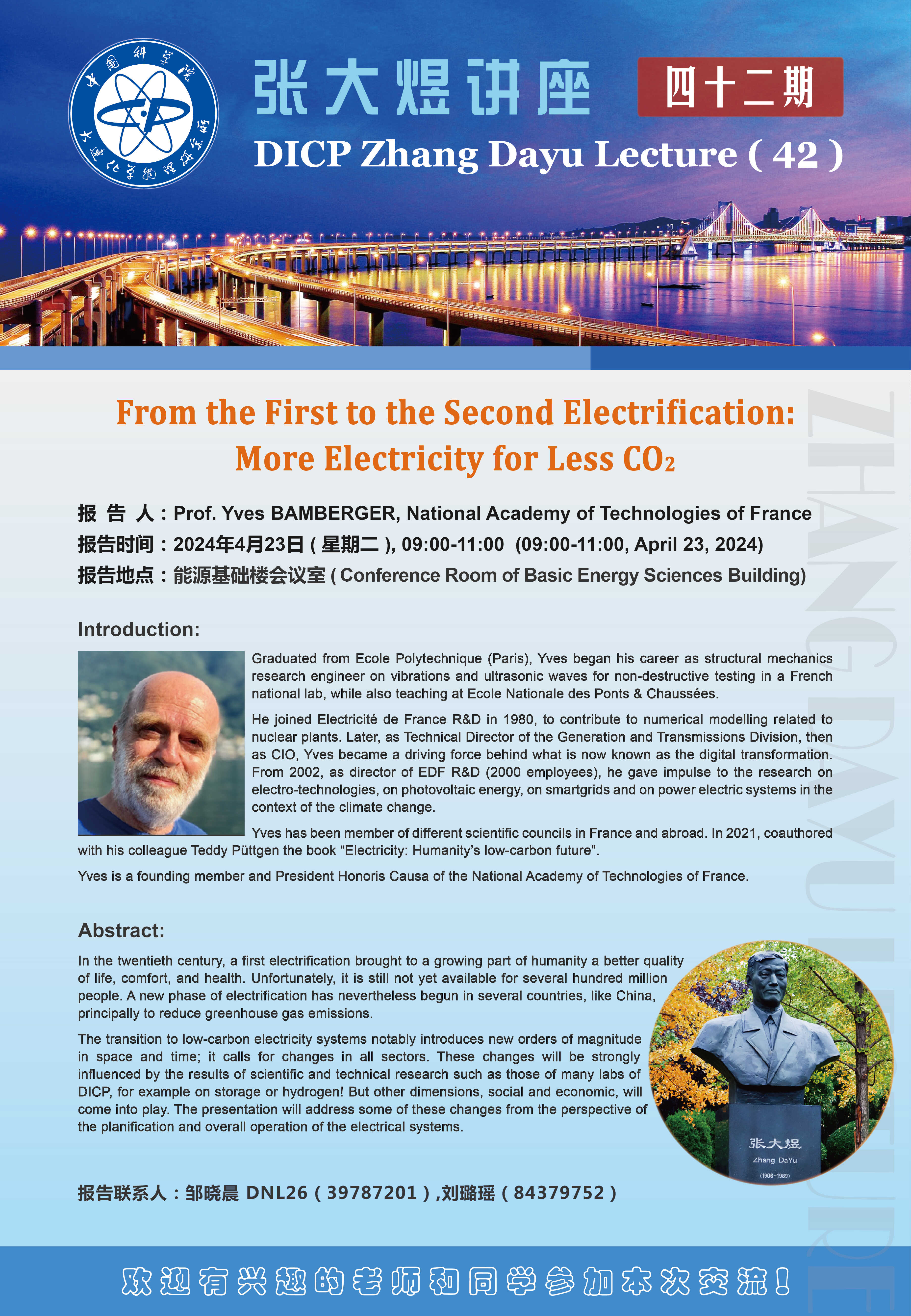 关于举行“第四十二期张大煜讲座——From the First to the Second Electrification: More Electricity for Less CO2”的通知
