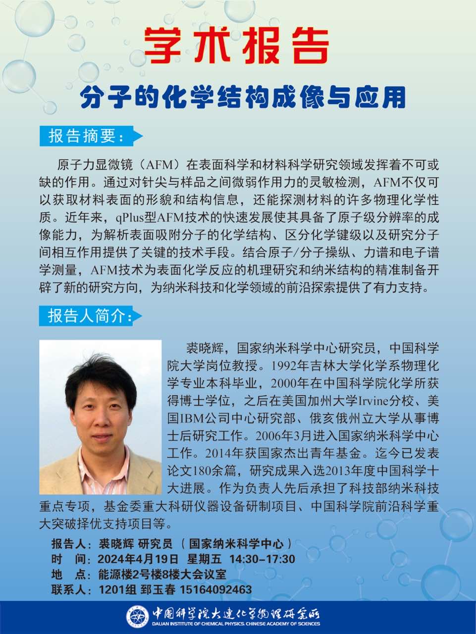 关于举行“分子的化学结构成像与应用”学术报告会的通知