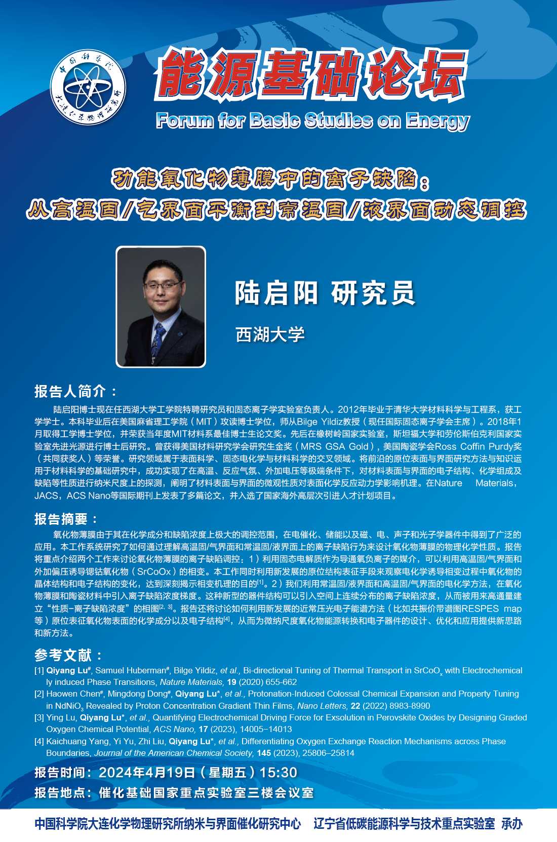 关于举行能源基础论坛“功能氧化物薄膜中的离子缺陷:从高温固/气界面平衡到常温固/液界面动态调控”的通知