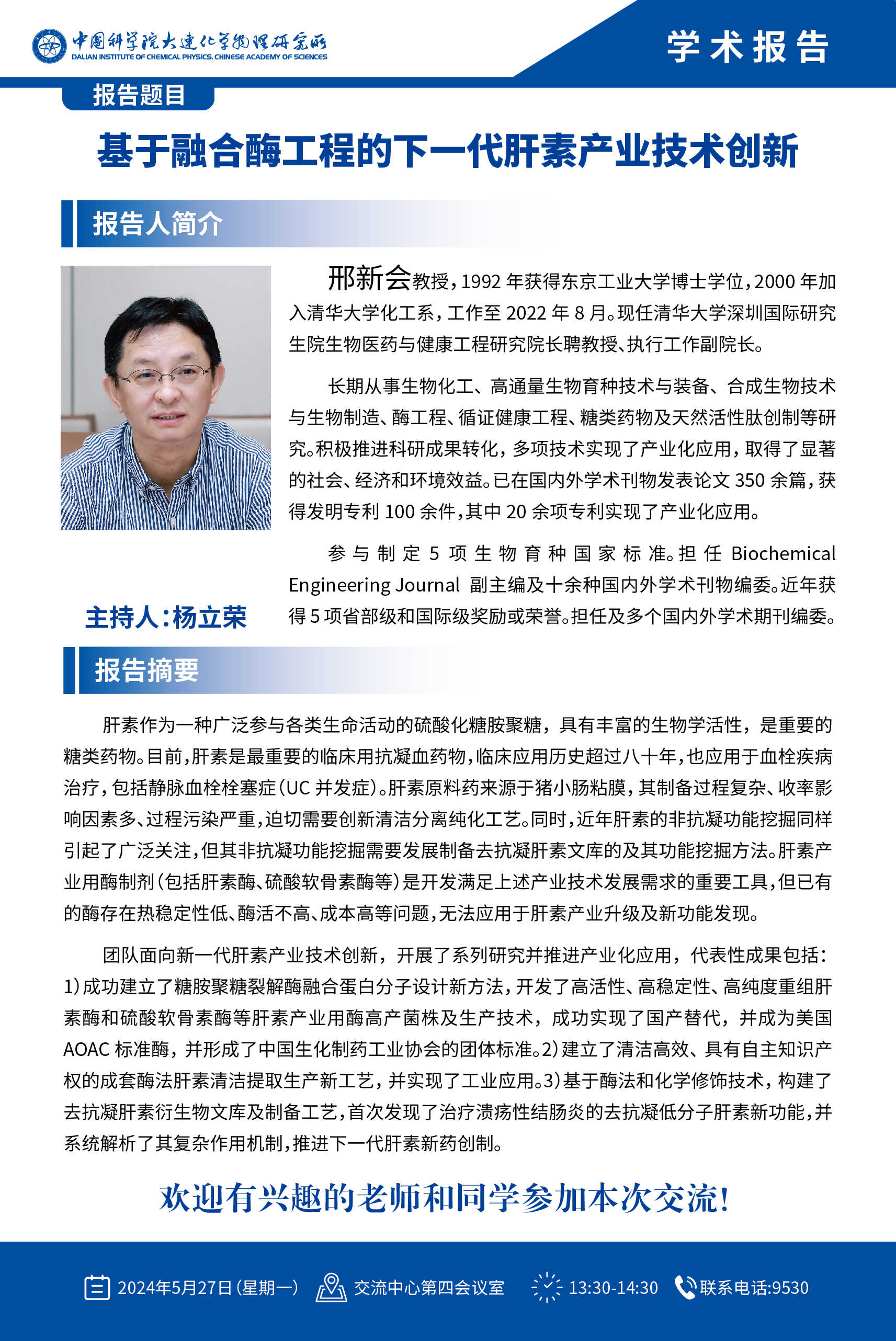 关于举行“基于融合酶工程的下一代肝素产业技术创新”学术报告会的通知
