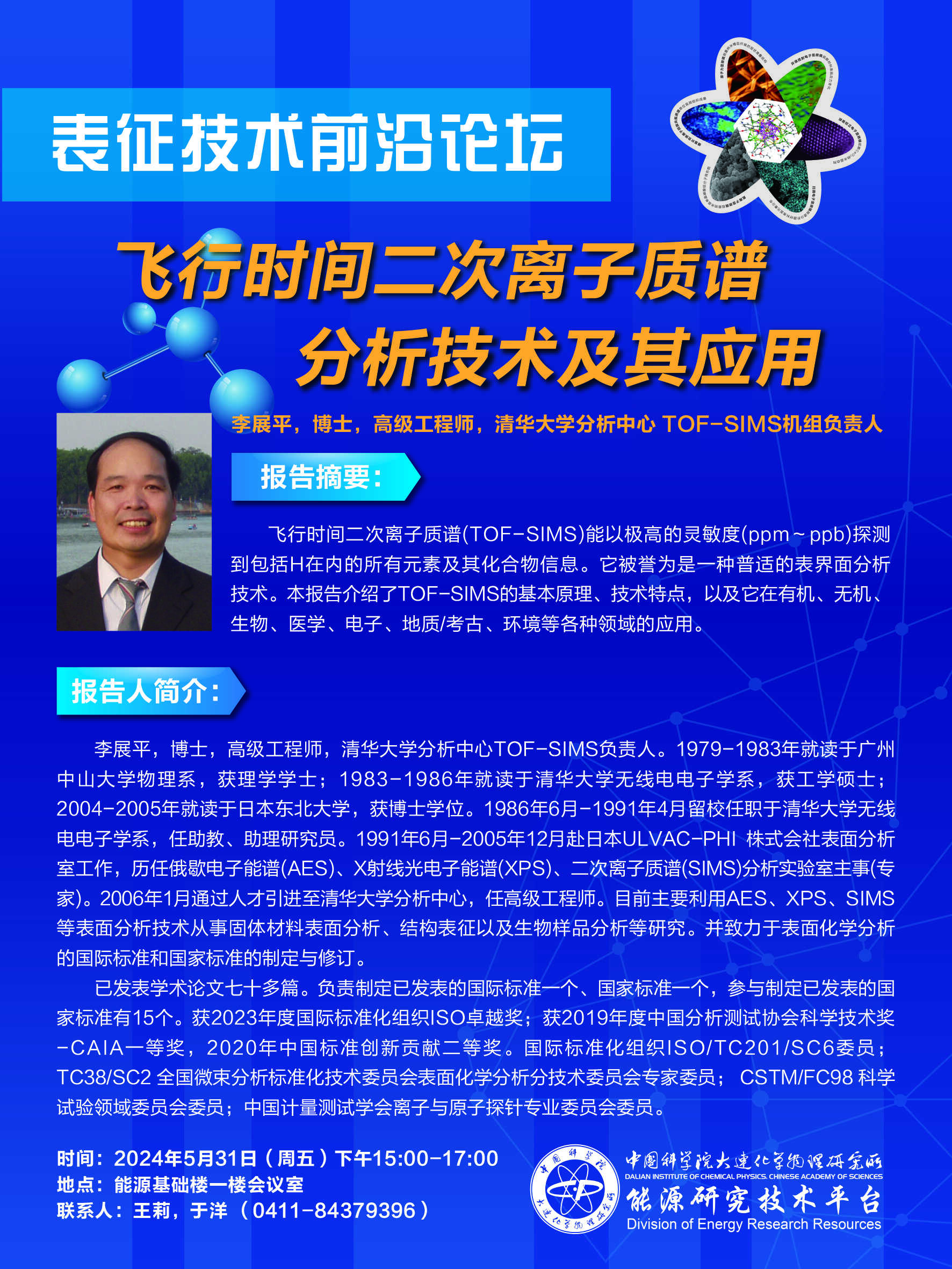 关于举行“表征技术前沿论坛:飞行时间二次离子质谱应用及进展(二)”的通知