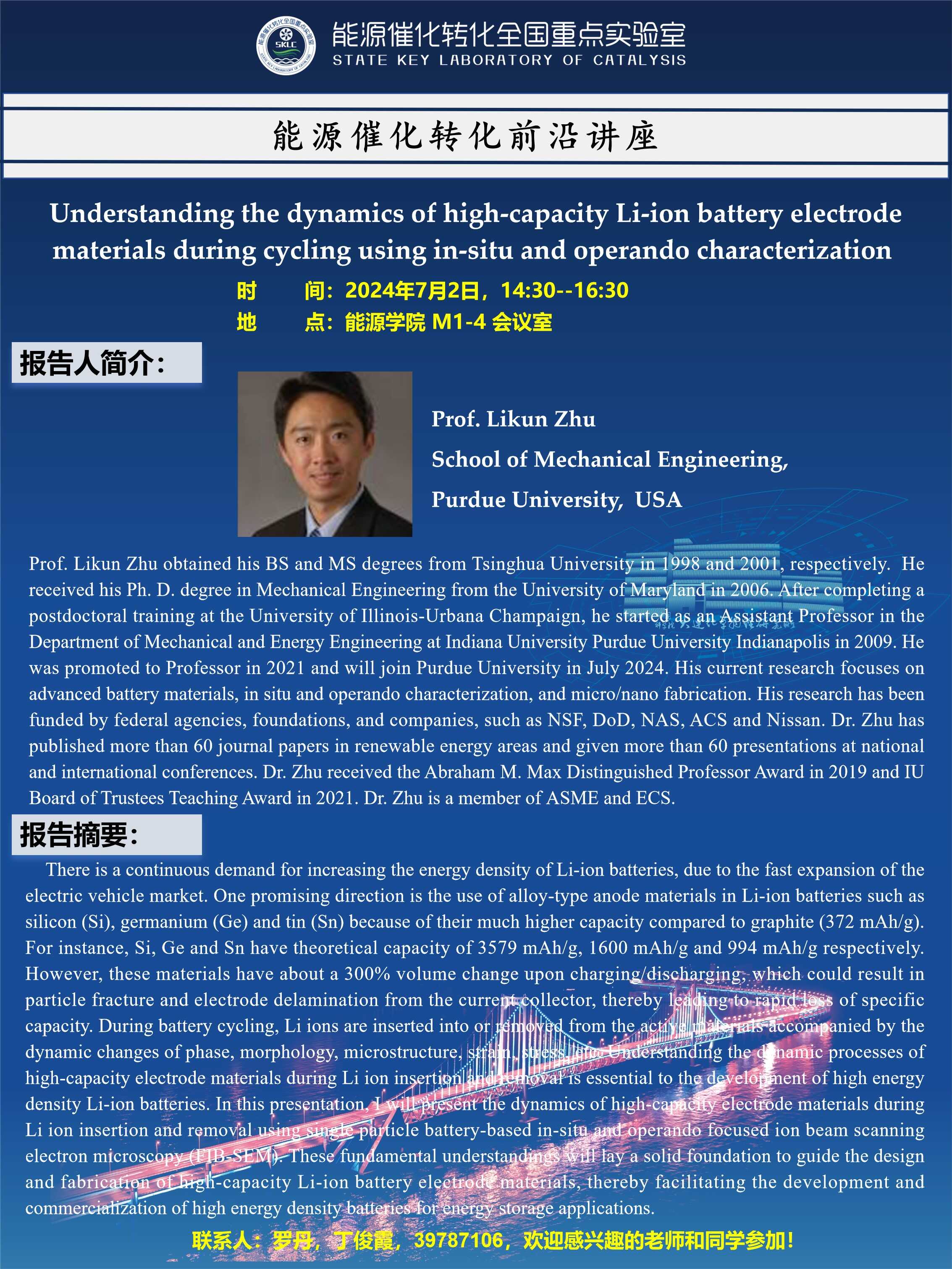 能源催化转化前沿讲座:Understanding the dynamics of high-capacity Li-ion battery electrode materials during cycling using in-situ and operando characterization