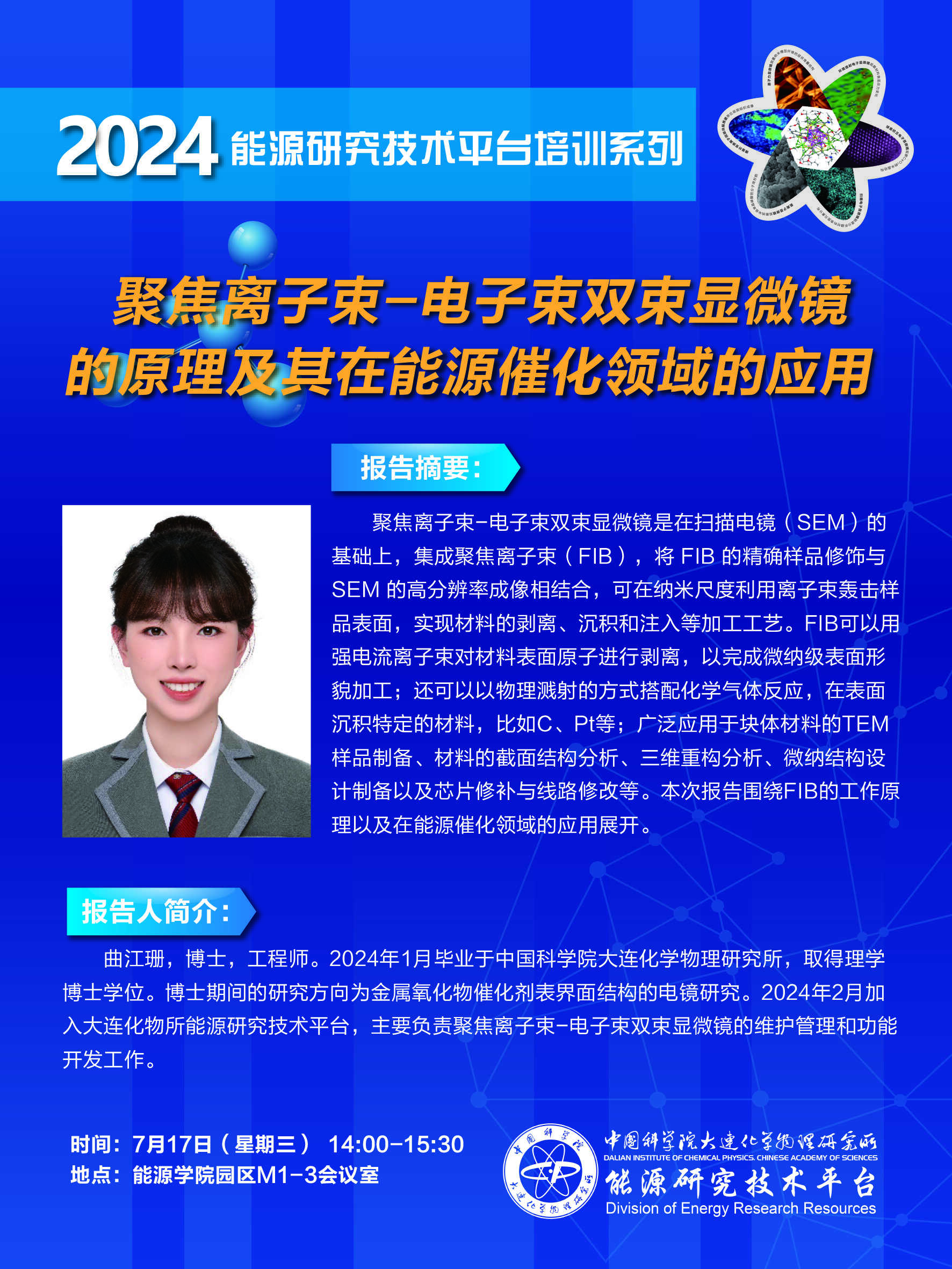关于举办“2024年度能源研究技术平台培训系列——聚焦离子束-电子束双束显微镜的原理及其在能源催化领域的应用”的通知