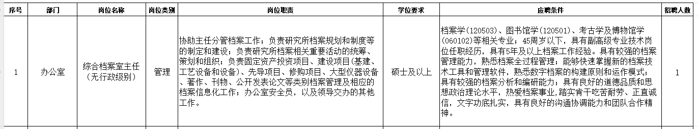 中国科学院大连化学物理研究所本着“按需设岗、公开招聘、竞争上岗、择优聘用”的原则,根据《大连化物所事业编制工作人员招聘实施细则(试行)》有关要求,现面向社会公开招聘职能部门工作人员1名,具体信息如下: