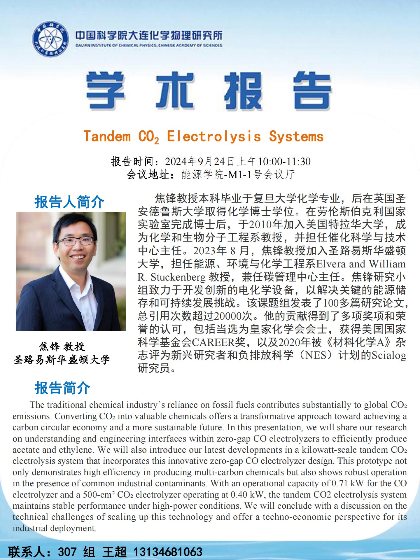 关于举行“Tandem CO2 Electrolysis Systems”学术报告会的通知