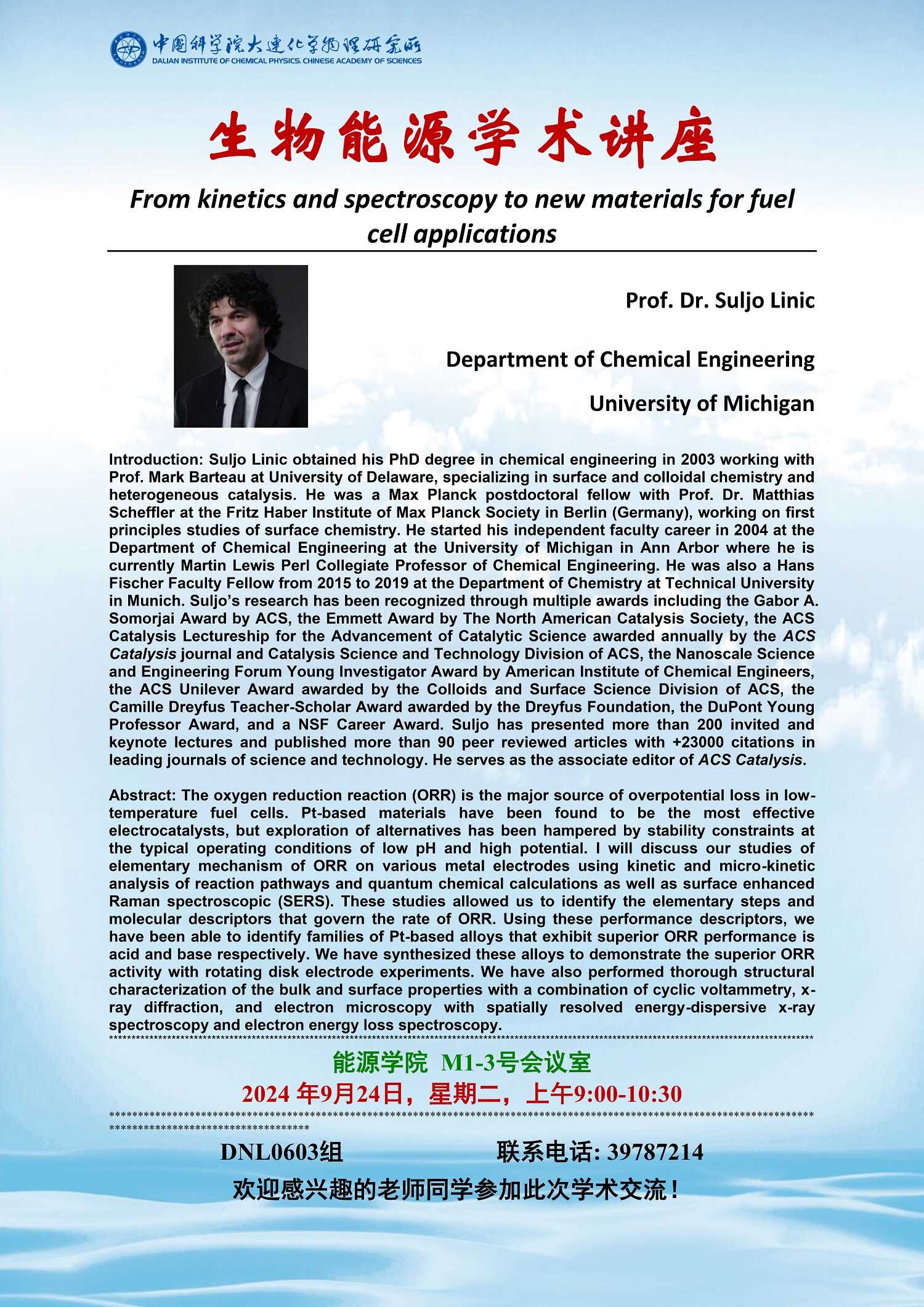 关于举行生物能源学术讲座“From kinetics and spectroscopy to new materials for fuel cell applications”的通知