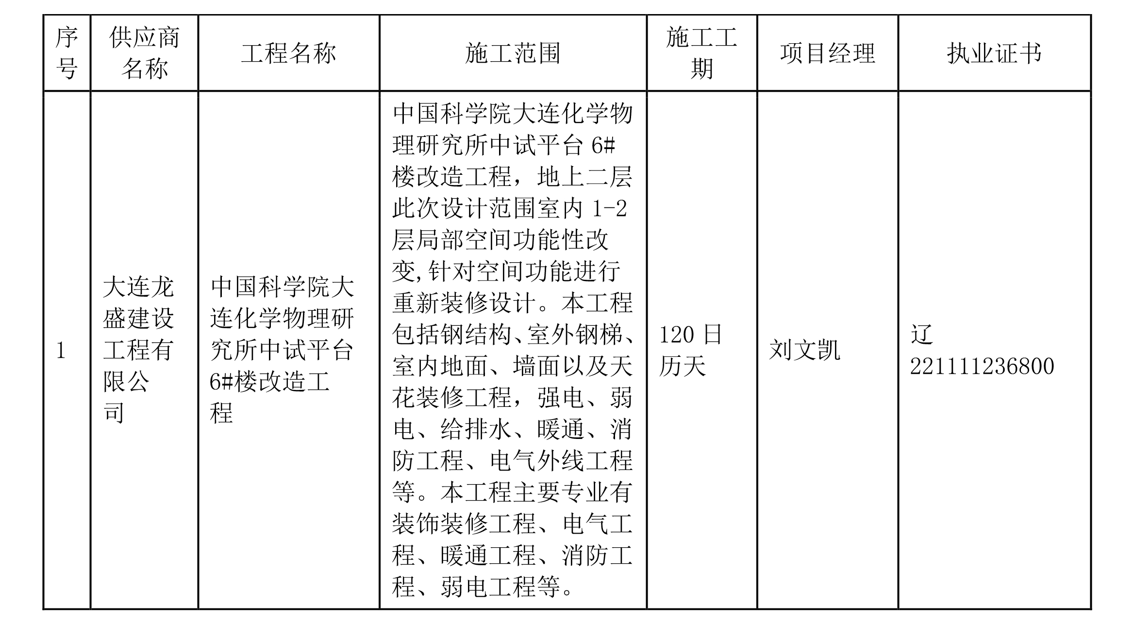供应商名称:大连龙盛建设工程有限公司