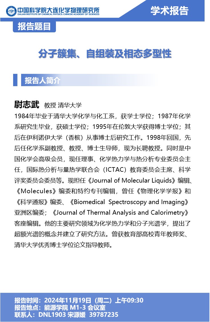 关于举行“分子簇集、自组装及相态多型性”学术报告会的通知