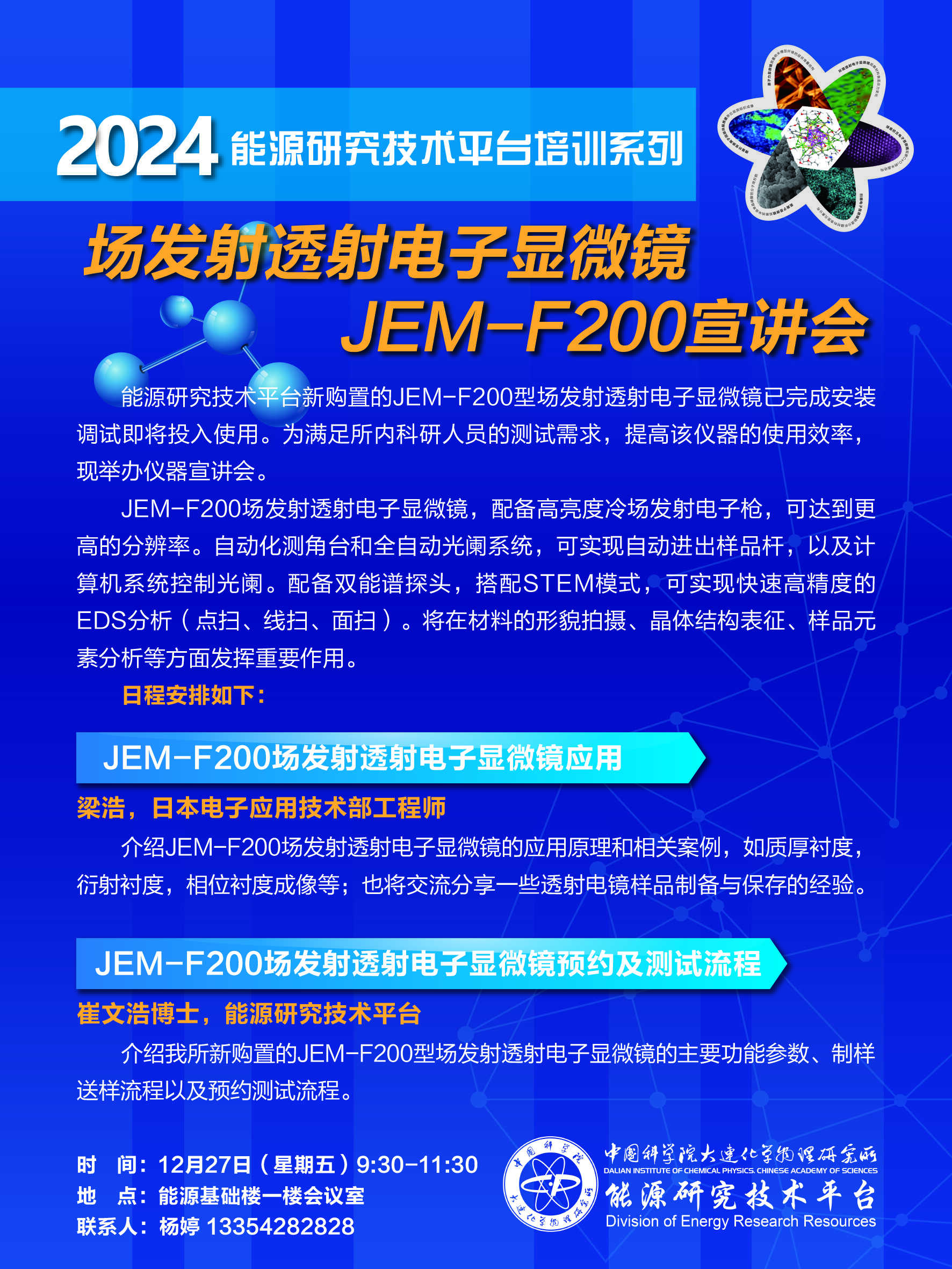 关于举办“2024年度能源研究技术平台培训系列——场发射透射电子显微镜JEM-F200宣讲会“通知