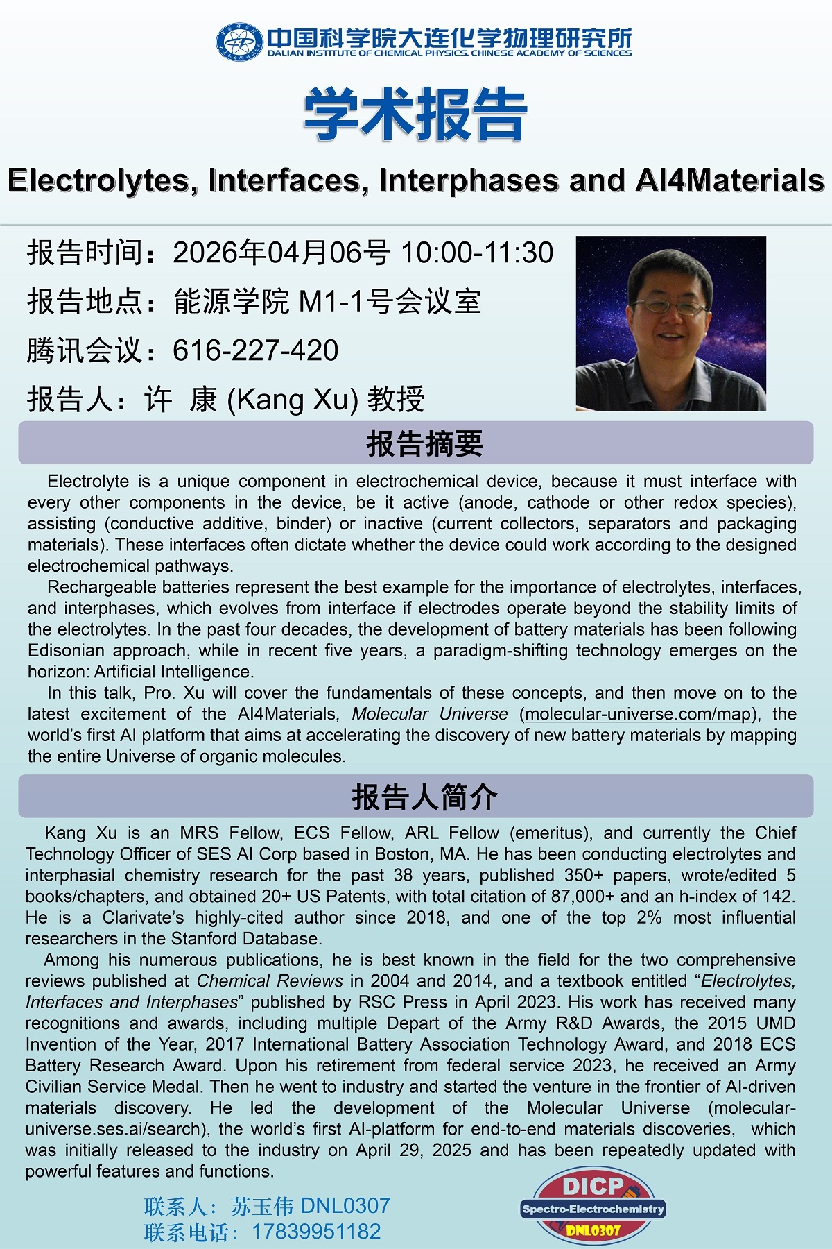 关于举行“Electrolytes, Interfaces, Interphases and AI4Materials”学术报告会的通知