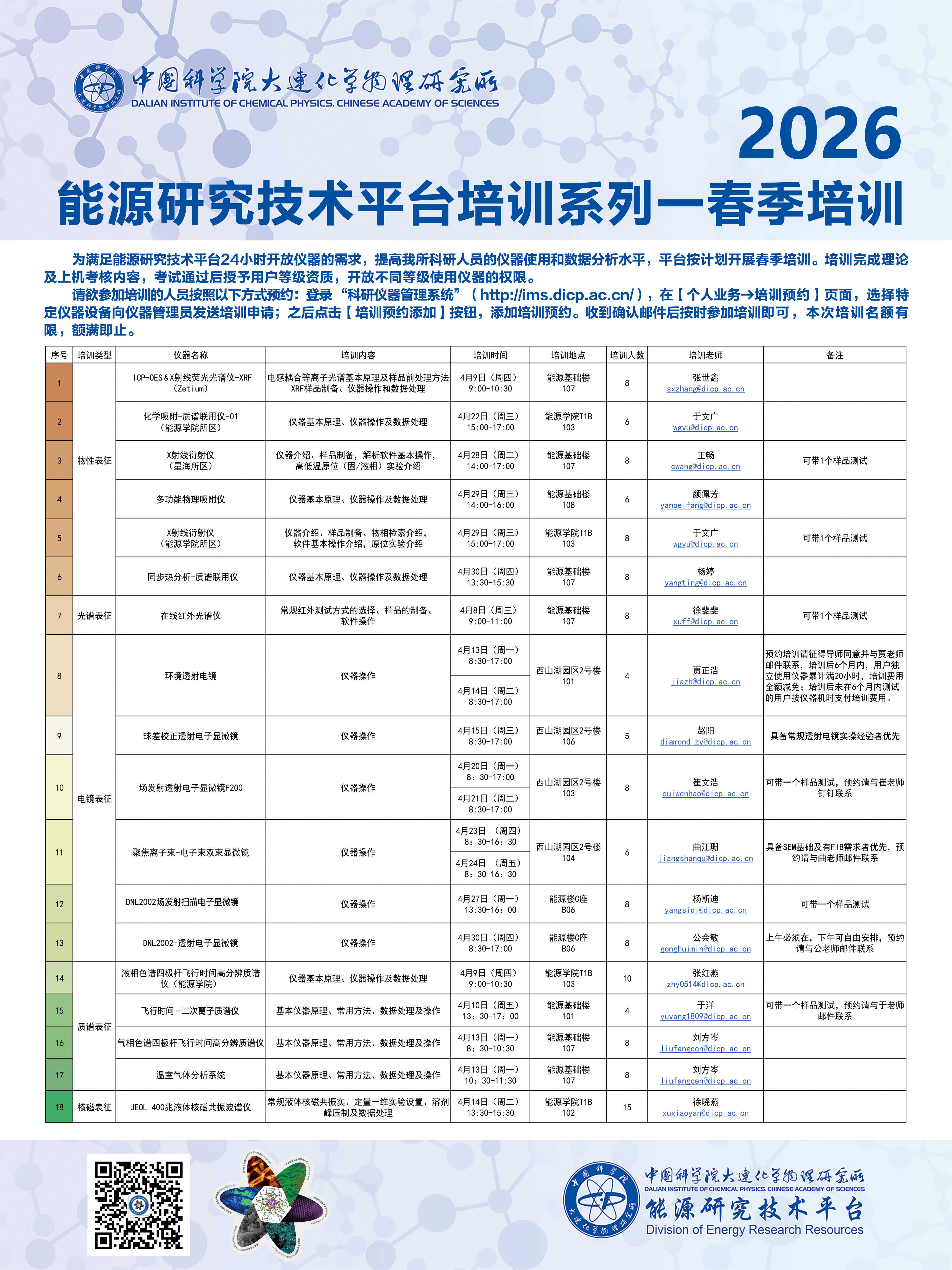 关于举办“2026年度能源研究技术平台培训系列——春季培训”的通知