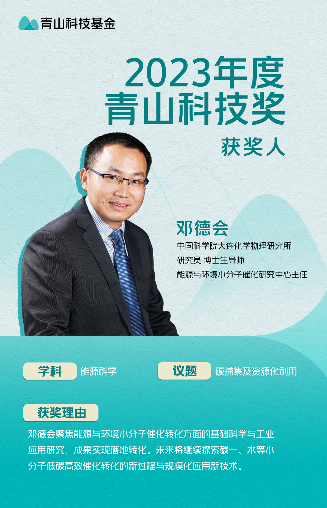 3月1日,2023年度“青山科技奖”获奖名单正式揭晓,共有包括我所能源与环境小分子催化研究中心邓德会研究员在内的10位学者获奖。