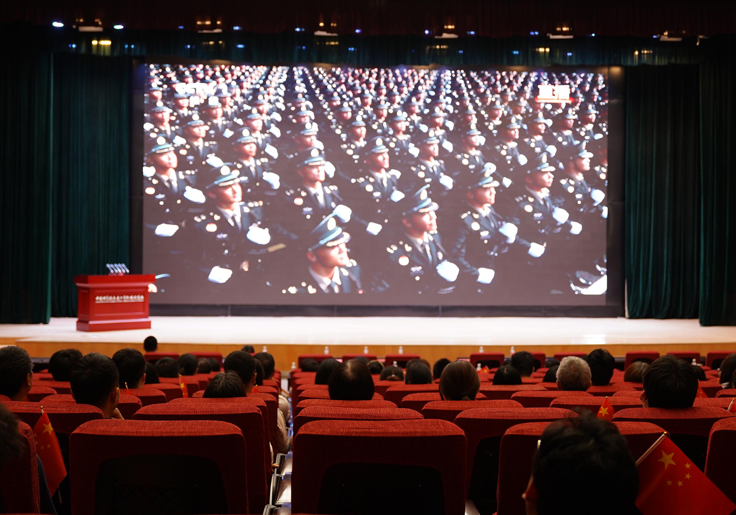 纪念大会上,中共中央总书记、国家主席、中央军委主席习近平发表重要讲话并检阅部队。受阅部队步履铿锵,铁流滚滚。宏伟壮观的场面深深震撼着每一个人,强烈的民族自豪感在大家心中激荡。