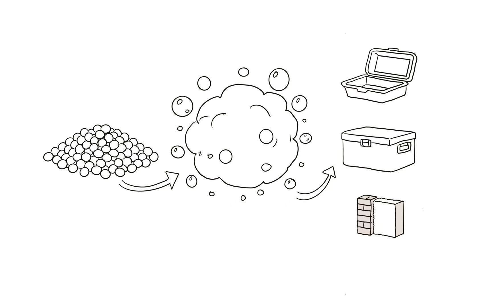 聚苯乙烯最大的特点是质轻、隔热、绝缘且价格低廉。发泡后(所谓“发泡”,就是通过加入发泡剂,在塑料内部吹入无数微小气泡,让它像面团发酵一样膨胀数十倍)的聚苯乙烯成为绝佳的隔热材料,因此被广泛用于一次性餐盒、冷链运输箱和建筑保温层。未发泡的聚苯乙烯则用于制作透明的一次性水杯、家电外壳等。