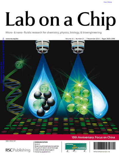《Lab on a chip》是当前国际微流控芯片领域的重要学术期刊(IF 6.34),鉴于近年来我国在微流控研究领域的突出表现,在《Lab on a chip》杂志创刊十年之际,应主编Dr. Harp Minhas之邀,林炳承、秦建华研究员主持了“10th Anniversary: Focus on China”专辑的编撰工作,该专辑遴选了来自大陆、香港及台湾地区的11篇文章,显示了我国学者在液滴逻辑控制、单分子检测、细胞操控、核酸和蛋白分析等重要微流控技术和应用领域的最新进展。