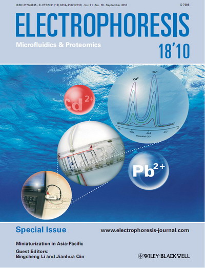 此外,林炳承、秦建华研究员还受邀作为年刊主编,主持了国际刊物《Electrophoresis》杂志( IF 3.05 )“Miniaturization in Asian-Pacific”专辑的编撰工作,至今已出版3期。近年来,Electrophoresis杂志加快了由传统电泳技术向芯片等新型技术的转型,强化了对微流控芯片研究的介绍。本期专辑共收录了亚太6个国家和地区作者的研究论文21篇,集中反映了这一地区在微流控相关研究领域的快速发展。