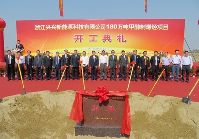 浙江兴兴新能源科技有限公司规划在嘉兴港区建设两套180万吨甲醇制烯烃项目,项目占地面积633亩,总投资60亿元,建成投产后可实现年销售收入150亿元,达产后每年新增利税25亿元。一期装置投资32亿元,预计2014年底建成投料试生产。