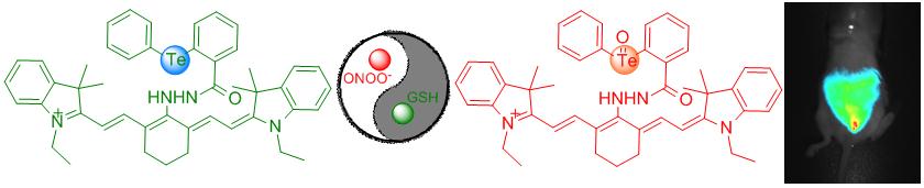 针对上述问题,本工作首次实现了对水溶液和细胞内的氧化还原循环对过氧化亚硝酰/谷胱甘肽的近红外荧光检测。该工作实现了在分子、细胞和活体三个层次上对具有生理氧化还原活性的物种的原位、实时、动态荧光成像分析。本研究结果将对揭示这些功能性活性物种的产生、转移、作用机制等规律产生重要意义。本文研究成果在一定程度上揭示了生物体内氧化还原过程对生物生理和病理的影响,为进一步的生物医学研究提供了有力的实用工具。(文/图 于法标)