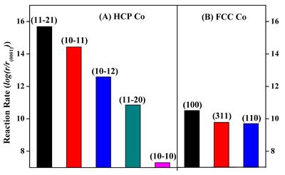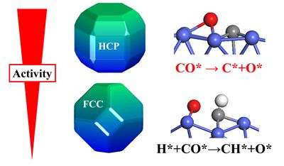催化反应的结构敏感性和高比质量活性催化材料的稳定性是多相催化研究中关键的基本科学问题,其中最具代表性的一个例子就是利用钴催化剂通过费托合成将合成气(一氧化碳和氢气的混合物)转化为油品和化学品。长期以来,人们发现合成气转化活性显著依赖于钴催化剂的晶相结构:当六角密堆晶相HCP Co的含量较高时催化活性较高,而当面心立方密堆FCC Co含量较高时催化活性则相对较低。由于实际制备的催化材料往往同时包含有两个晶相,HCP Co是否较FCC Co具有更高的费托本征活性仍然是一个悬而未决的问题。与此同时,随着钴催化材料尺寸减小、反应温度升高,HCP Co将会发生结构相变,转变到FCC Co。这些问题的存在很大程度上限制了高效、稳定钴催化材料进一步的优化设计研究。