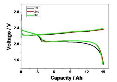 近日,我所燃料电池研究部陈剑研究员领导的先进二次电池研究组(DNL0306组)在高比能量锂二次电池方面取得新进展,研制成功额定容量15 Ah的锂硫电池,并形成小批量制备能力。这是迄今世界上已见报道的容量最大的锂硫电池。第三方(中国科学院物理研究所)检测结果表明,电池的比能量大于430 Wh/kg,超过了Sion Power公司报道的由其研制的锂硫电池的技术指标(2.5Ah@350Wh/kg),代表了目前中科院从事锂硫电池研究的最好水平。这也是我所锂硫电池研究在科技部“863”计划和中国科学院纳米先导专项“长续航动力锂电池”项目资助下取得的重要进展。