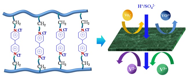 近年来,储能技术研究部在液流电池非氟离子传导膜方面取得了系列研究进展,原创性的提出“离子筛分传导”机理,并对非氟离子传导膜的构效关系、传输机理作了系统深入的研究 (Energy Environ. Sci. 2013, 6, 776; 2012,5, 6299; 2011,4, 1147; 2011 4,1676; ChemsusChem 6 (2013) 328; J. Mater. Chem. A, 2014,2,9524;Chem. Commun 2014, 50, 4596; Sci. Rep. 4, 4016; DOI:10.1038/srep04016…)。该成果是在前期工作基础之上取得的又一项新进展。