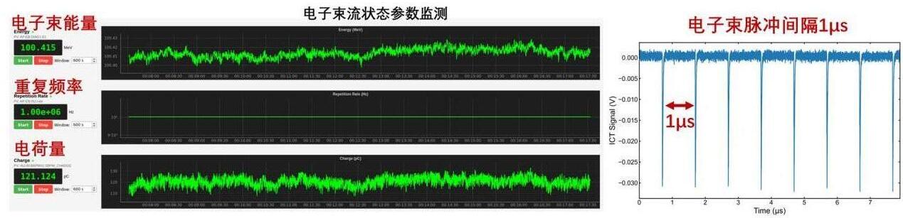 目前,该束流测试平台已实现0.1毫安平均流强电子束流的稳定加速运行。具体技术指标包括:电子束流能量大于1亿电子伏特、单脉冲电荷量大于100皮库、重复频率为1百万赫兹,整个平台稳定运行持续1小时,束流能量稳定性优于0.01%(RMS)。