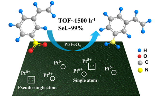 含有各种取代基的芳香硝基化合物选择加氢制备相应的芳胺是精细化工领域最重要的反应之一,在农药、医药、染料及高分子聚合物等领域具有广泛的应用。但当反应物分子中含有C=C、C≡C等易还原基团时,选择性还原硝基而保留其它官能团对于传统的过渡金属加氢催化剂而言仍然面临相当大的挑战。单原子以及准单原子催化剂为解决该问题提供了一条绿色而极其有效的途径,有望在未来得到工业应用。