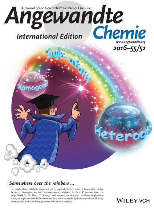 近日,我所航天催化与新材料研究室张涛院士研究团队在单原子催化研究方面取得新进展,首次发现单原子催化剂具有与均相催化剂相当的活性,从实验上证明单原子可能成为沟通均相催化与多相催化的桥梁。该研究工作得到审稿人的高度评价,以Hot Paper(top 10%)形式发表于Angew. Chem. Int. Ed.上,并被推荐为后封面文章(DOI:10.1002/anie.201607885)。