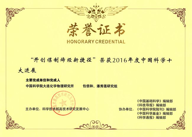 2月20日,科技部发布2016年度中国科学十大进展,我所包信和院士和潘秀莲研究员团队的“开创煤制烯烃新捷径”成果名列其中。