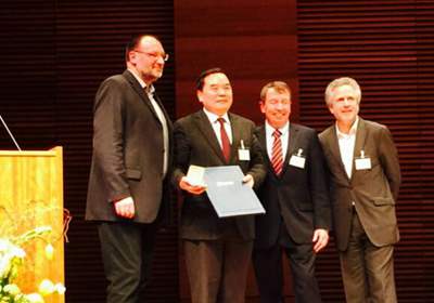 3月16日,在德国魏玛举行的第50届德国化学工程与生物技术协会催化学术年会上,我所包信和院士因在纳米催化和能源小分子催化转化研究方面取得杰出成就,被授予Alwin Mittasch奖,并在颁奖仪式上作了题为“New Horizons of C1 Chemistry”的大会特邀报告。