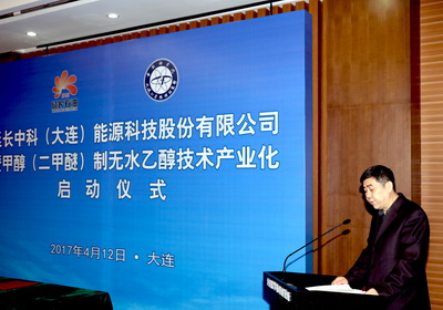 刘中民在致辞中首先对延长集团、大连市政府及长兴岛经济区对我所和延长中科公司的支持表示衷心感谢。他说,煤基乙醇技术具有重要的战略意义,是保证我国能源安全和粮食安全的重要技术手段。以甲醇(二甲醚)制无水乙醇技术为核心的10万吨级煤基乙醇项目的投产,得到了中央主流媒体的广泛报道,目前已有10多家企业正在洽谈引进成套技术建设工业装置,也证明了这一技术的重要性。延长中科公司的成立,将肩负起将该技术在全国范围推广的历史使命,希望公司抓住机遇,快速推进,兼顾效益与规范化管理,为公司快速发展奠定基础。