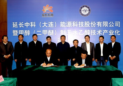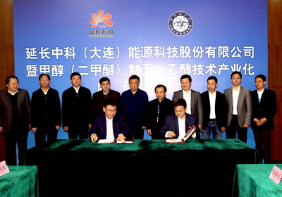 启动仪式上,沈浩、杨悦、刘中民、王华共同为延长中科公司揭牌,长兴岛经济区管委会与延长中科公司签署投资协议,兴化集团与延长中科公司签署50万吨/年煤基乙醇技术转让框架协议。延长中科公司的成立,将打通煤基乙醇技术与社会对接的“最后一公里”,为该技术的大范围推广应用提供坚实支撑,对于我国大力发展燃料乙醇并抢占煤基乙醇产业国际制高点必将发挥重要的作用,从而推进我国清洁能源产业的发展。