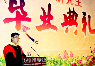 6月29日下午,能源楼会议中心气氛庄严而热烈,我所2017届研究生毕业典礼在这里隆重举行。中国科学院大学相关领导,辽宁师范大学副校长岳崇兴,大连医科大学副校长赵杰等6位高校嘉宾,陕西延长石油(集团)有限责任公司总工程师扈广法,天津渤海化工集团公司党委书记、董事长赵立志,托普索(Haldor Topsoe)中国区总裁Joakim Thogersen,岛津企业管理(中国)有限公司分析仪器市场部行业产品负责人胡家祥,美国通用仪器公司总裁王平欣等十余位设奖企业嘉宾,我所校友南京大学刘建国教授,辽宁石油化工大学张静教授,中国科学院大学,华中科技大学化学与化工学院,南开大学物理科学学院的本科生代表,我所与大连理工大学联合培养的“张大煜化学菁英班”和“王大珩物理科学班”的老师和同学们以及我所在所所领导,研究生导师,研究生等参加了此次毕业典礼。典礼由纪委书记毛志远主持。