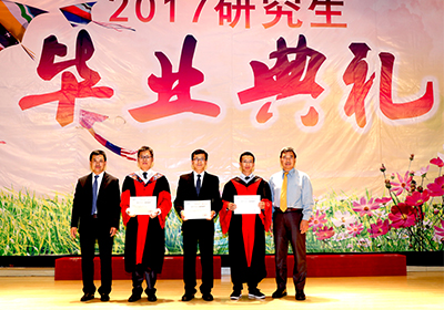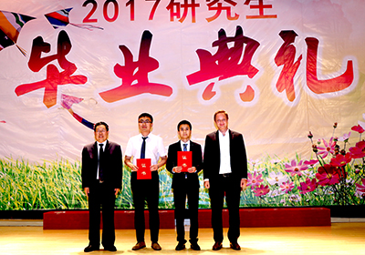 我所学位评定委员会副主任王树东宣读了我所2017年研究生学位授予及拟授予名单,并对他们顺利毕业表示热烈祝贺。我所8名学位评定委员会委员为参加典礼的毕业研究生代表颁发了毕业证书。随后,党委书记王华为2017年优秀导师和优秀研究生奖获得者颁发了获奖证书。