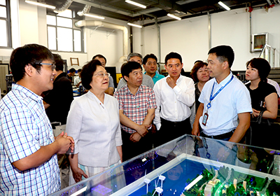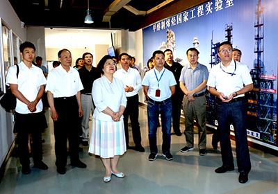 林文漪一行首先参观了甲醇制烯烃国家工程实验室、储能技术研究部、燃料电池研究部,听取了相关科研人员的工作介绍,并就感兴趣的问题与科研人员进行了交流。林文漪一行还观看了大连相干光源视频介绍短片,对相关情况进行了了解。