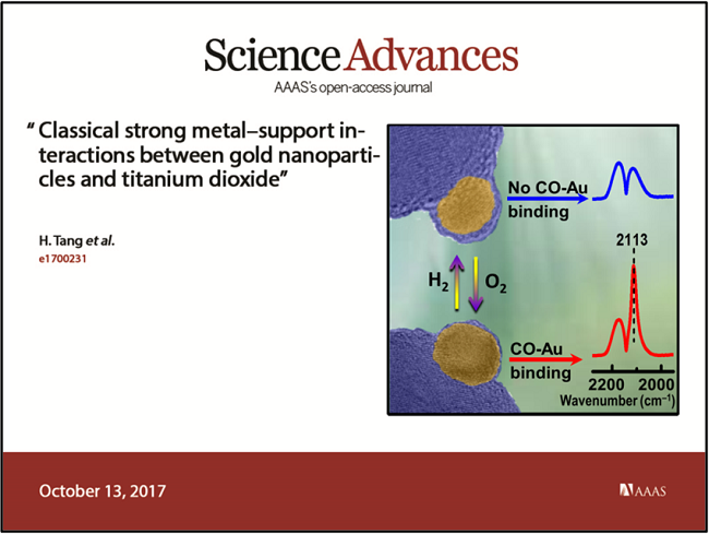 近日,我所航天催化与新材料研究中心乔波涛研究员和张涛院士团队与穆斯堡尔谱技术研究组(DNL2005)王军虎研究员团队合作,在金属载体强相互作用研究方面取得新进展:首次发现金纳米颗粒与二氧化钛之间的金属载体强相互作用并阐释了其形成原因。研究成果在Science Advances(Science Advances, DOI: 10.1126/sciadv.1700231)上发表。
