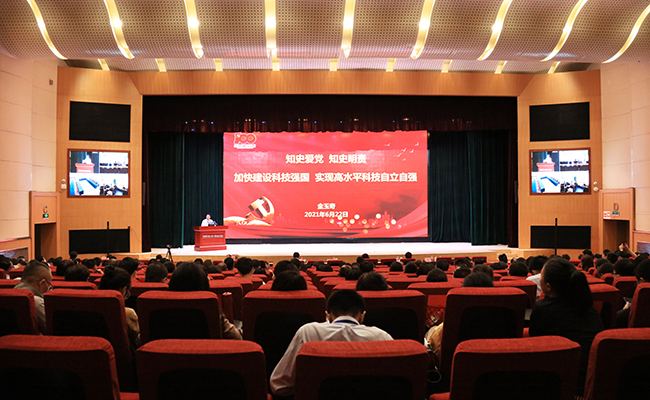金玉奇作了题为《知史爱党、知史明责,加快建设科技强国,实现高水平科技自立自强》的党课报告,从“党的历史是丰富生动的教科书”“基层党组织建设的光辉历史”“坚决打赢关键核心技术攻坚战”三个方面,全面回顾了党的发展历程,深入介绍了党的基层组织发展史,直接点明了新时代科研工作者的神圣使命和目标要求。报告主题鲜明、脉络清晰,内容丰富、史料详实,任务明确、战鼓催征;号召全所党员干部认真学习、深刻领会习近平总书记对中科院提出的“四个率先”和“两加快一努力”要求,始终牢记身为“国家队”“国家人”,必须心系“国家事”,肩扛“国家责”,继续为实现中华民族伟大复兴的中国梦贡献力量。
