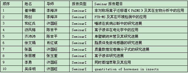 分析化学SeminarI考核定于11月6日(周五)上午8:00在生物楼一楼报告厅举行,请报名参加本次SeminarI考核的同学准时参加。请同学们提前准备并检查PPT,避免出现打不开或文件损坏等影响报告情况,并于报告前一天17:00前将PPT发至jiaoxue@dicp.ac.cn。在报告时注意安排好时间,报告时间请严格控制在15分钟内。