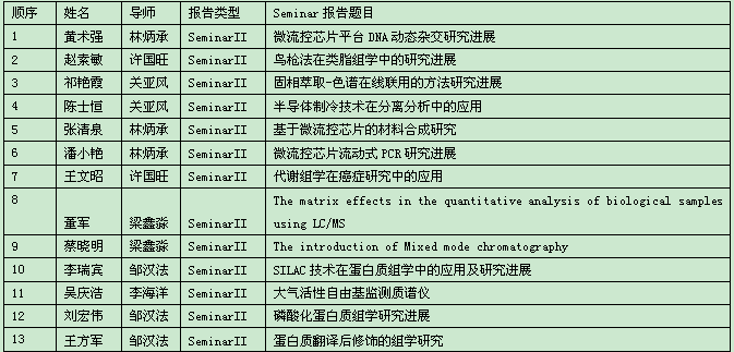 分析化学SeminarII考核定于11月9日(周一)下午13:00在生物楼报告厅举行,请报名参加本次Seminar考核的同学准时参加。请同学们提前准备并检查PPT,避免出现打不开或文件损坏等影响报告情况,并于报告前一天17:00前将PPT发至jiaoxue@dicp.ac.cn。在报告时注意安排好时间,报告时间请严格控制在15分钟内。