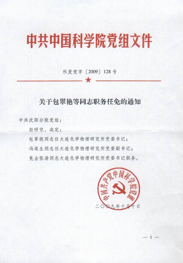 中共中国科学院党组关于包翠艳等同志职务任免的通知