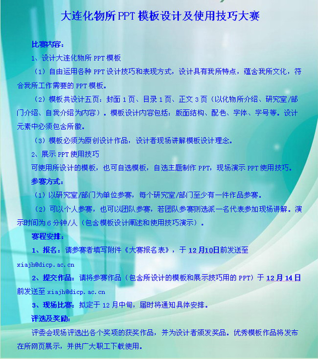 关于举办大连化物所PPT模板设计及使用技巧大赛的通知