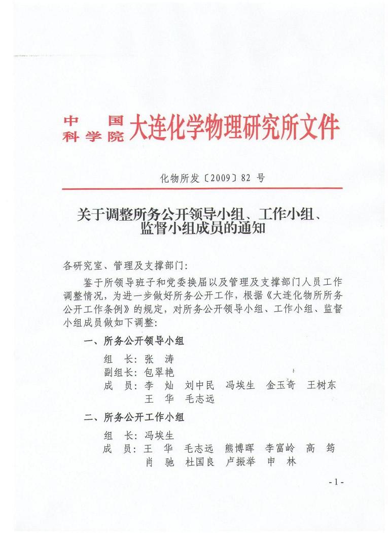 关于调整所务公开领导小组、工作小组、监督小组成员的通知