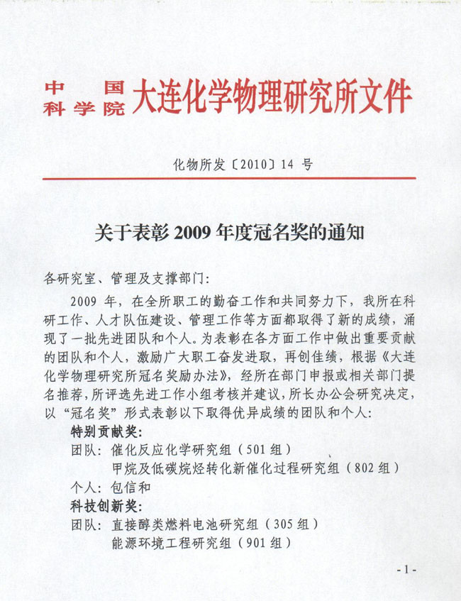关于表彰2009年度冠名奖的通知