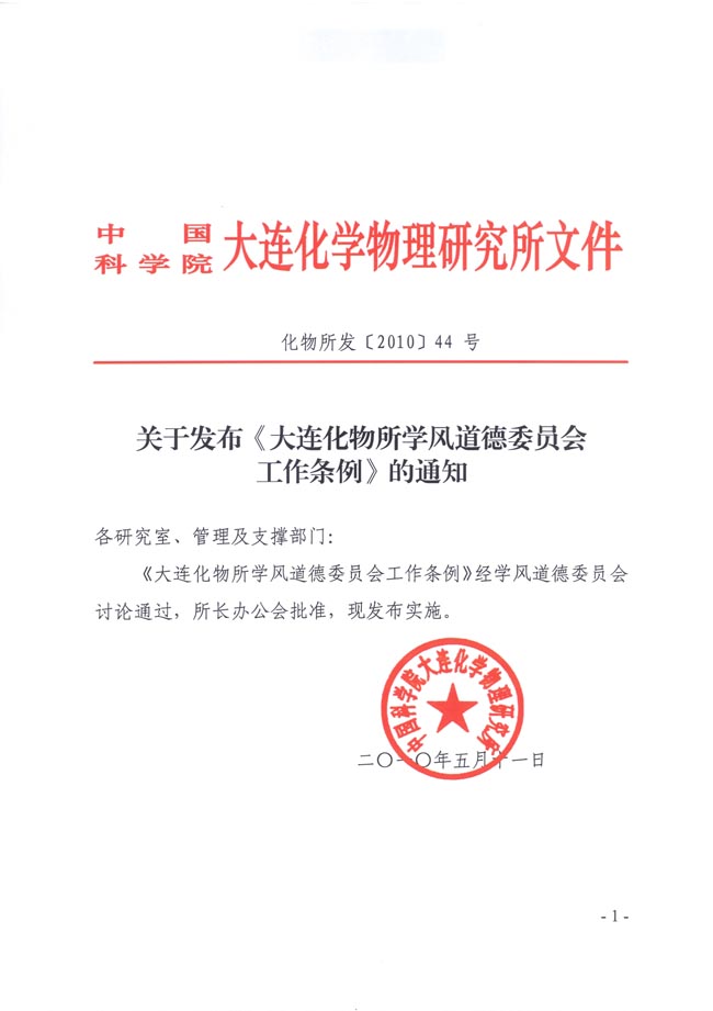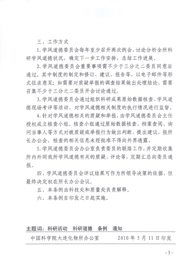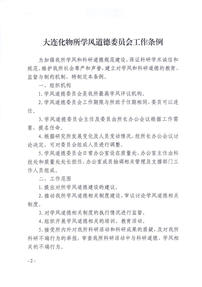 关于发布《大连化物所学风道德委员会工作条例》的通知