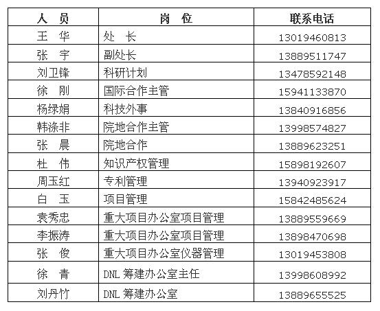 为便于全所同志暑期休假期间联系科技处相关工作,现公布科技处人员假期联系方式,请周知。如有需要,请随时与相关岗位人员取得联系,我们将及时提供支持与帮助。