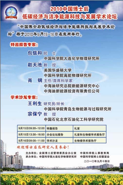 关于举行“中国博士后低碳经济与洁净能源科技与发展学术论坛”的通知
