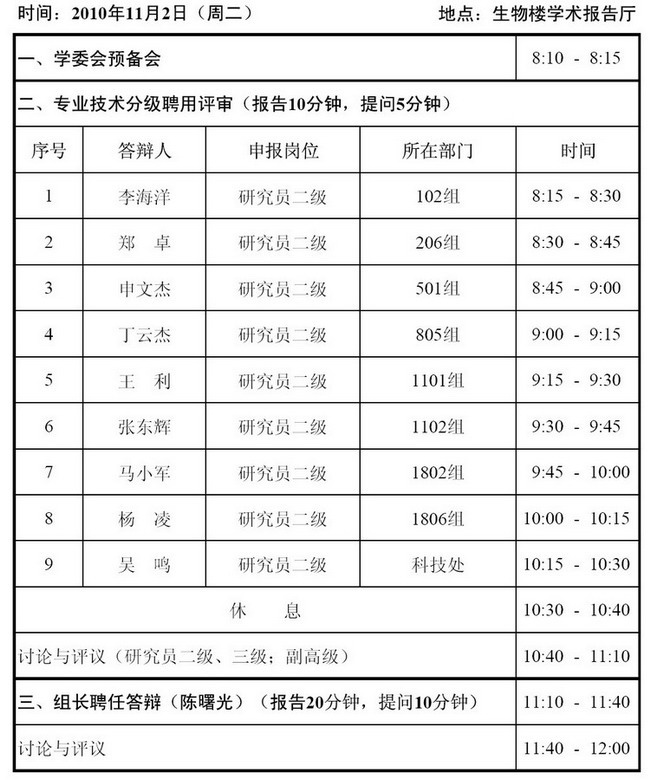 2010年11月2日学术委员会日程安排