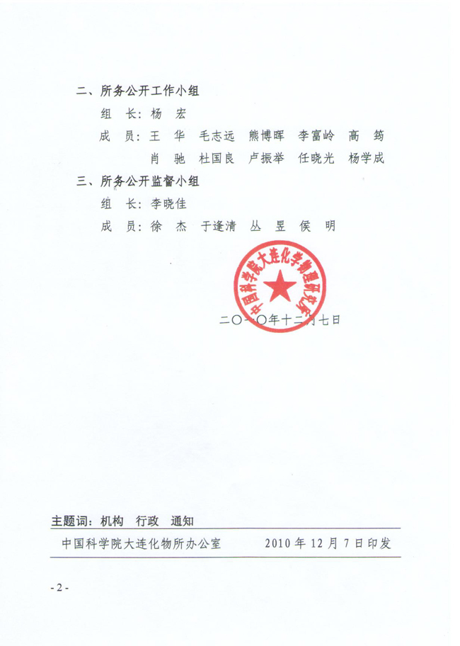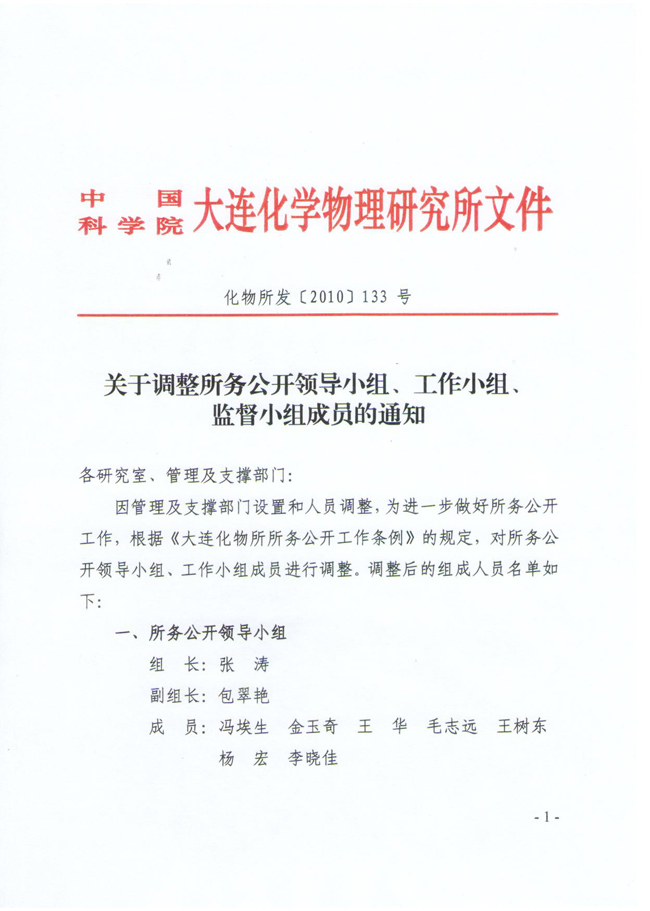 关于调整所务公开领导小组、工作小组、监督小组成员的通知