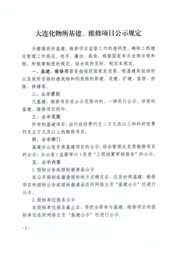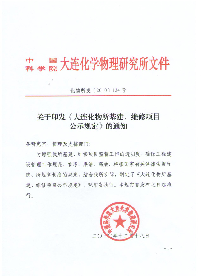 关于印发《大连化物所基建、维修项目公示规定》的通知